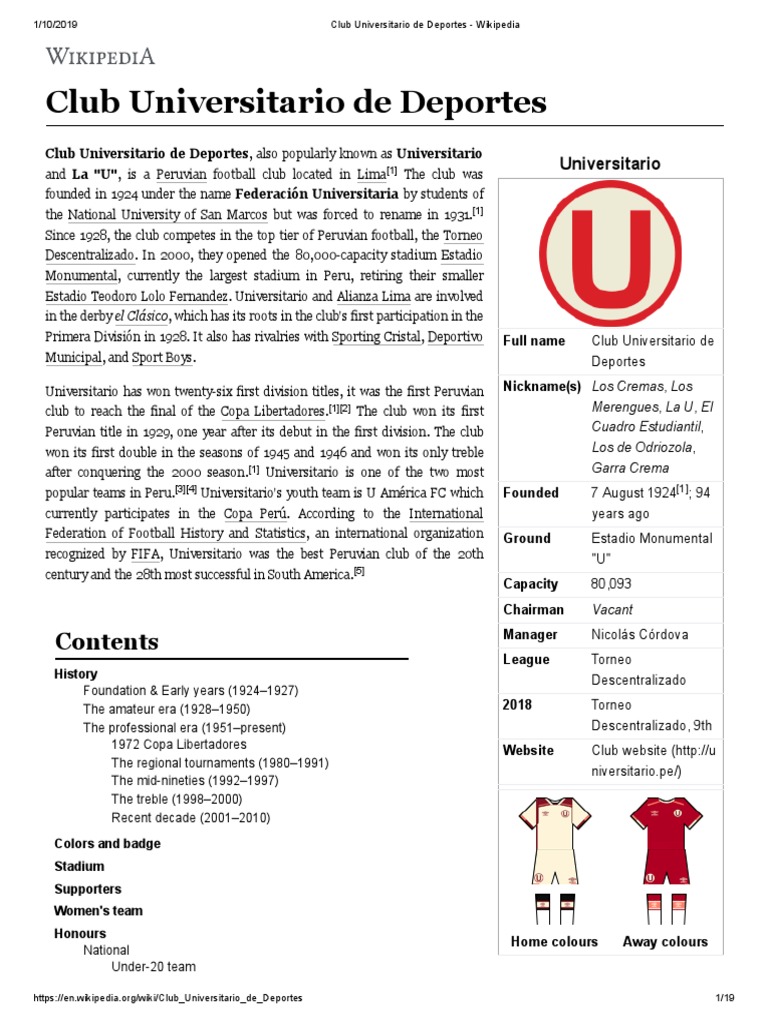 Club Universitario De Deportes Wikipedia Pdf Sports Teams Association Football Teams